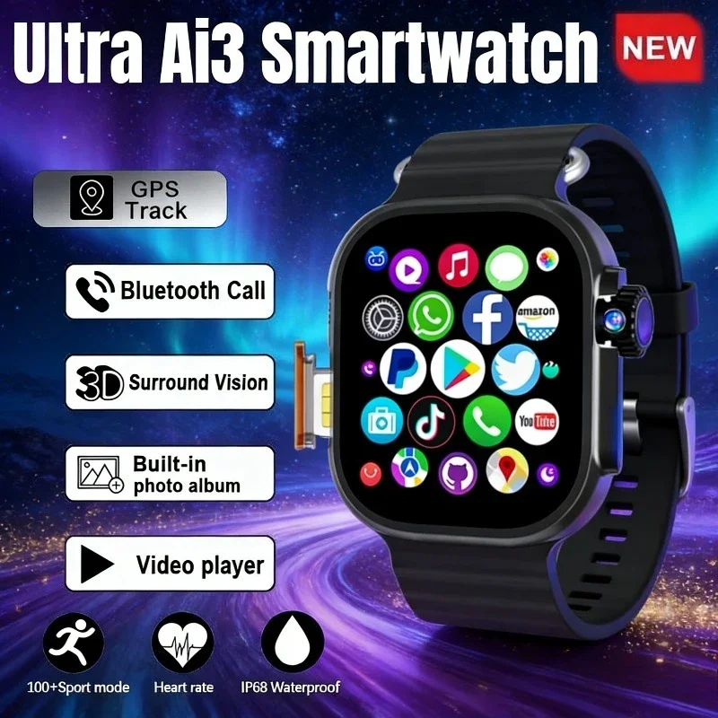 Ai3 Smartwatch: 2.2" HD Display (448*528) | 180° Rotatable Camera| 4G Calling & 256GB Memory | Comprehensive Health Tracker $52.08