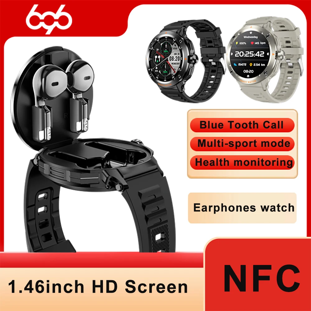 NFC Smart Watch TWS 2-in-1 Headset Bluetooth Call Heart Rate Blood Pressure Health Monitoring Headphones Play Music Smartwatch $28.88
