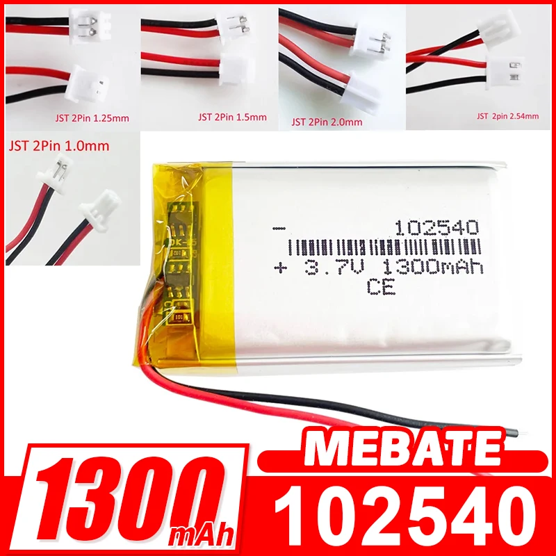 3.7V 1300mAh Lipo Rechargeable Battery 102540 + 2pin Plug Replace For Bluetooth GPS Wired Microphone Smart Watch $8.04