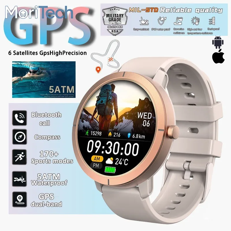 MoriTech GPS Smart Watch AMOLED 1.32inch BT Call 5ATM Waterproof 170 Sport Modes 360mAh Battery Outdoor Men Women Smart Watch $60.68
