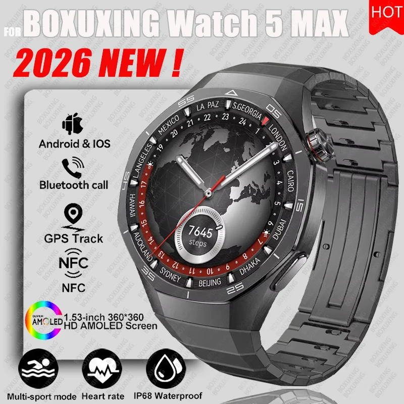 2026 New BOXUXING Watch 5 MAX Smart Watch HD AMOLED Screen NFC GPS Tracker Bluetooth Call Health Waterproof Smartwatch Men Women $28.38