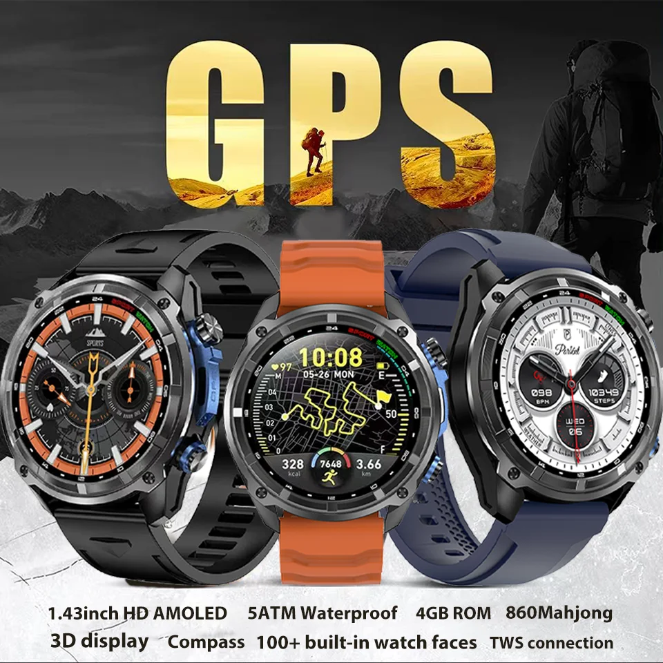 NEW 2026 GPS Smart Watch with Offline Maps 4GB Memory Video Player Military Sports Smartwatch Men 30m Swimming Waterproof AMOLED $56.38