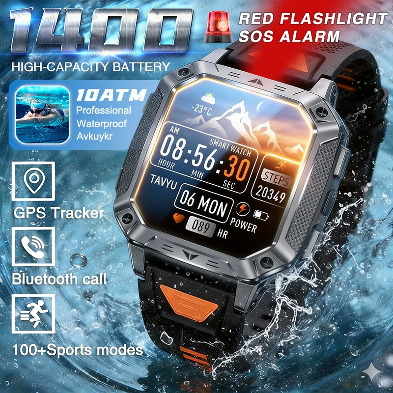 TANK Ultra 2026: 1400mAh Military GPS Smartwatch Men 200Day Standby Rugged Tactical Watch 10ATM Diving SOS Satellite Alert Clock $28.83