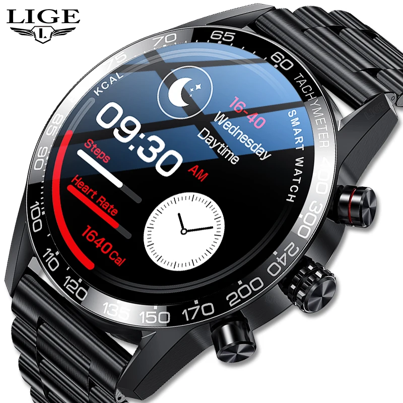 LIGE New Full Touch Screen Smart Watch For Men Bluetooth Call Heart Rate health Monitoring Fitness Tracker Sports Smartwatch Men $2.25
