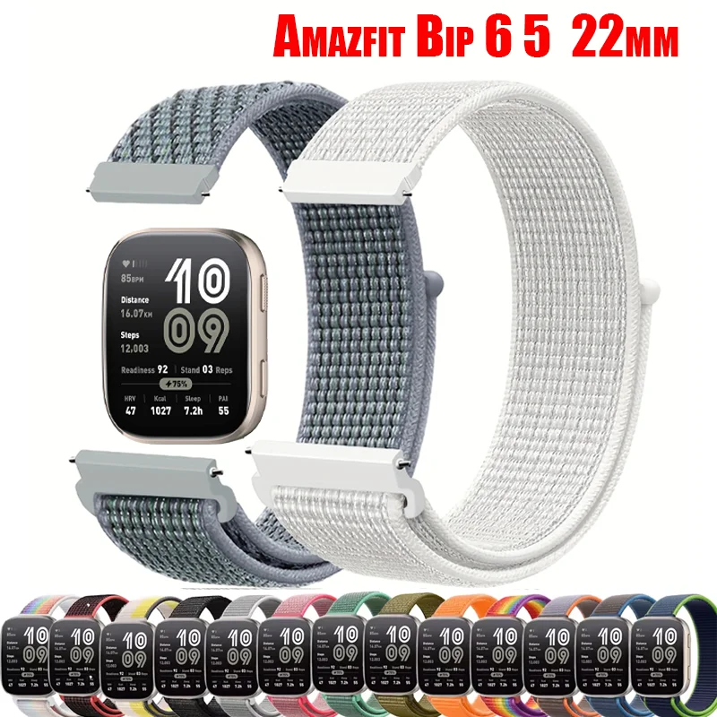 Nylon Loop Strap For Amazfit Bip 6 Smartwatch Accessories Sport breathable pulseira Bracelet Correa Amazfit Bip6 22mm watch band $3.12