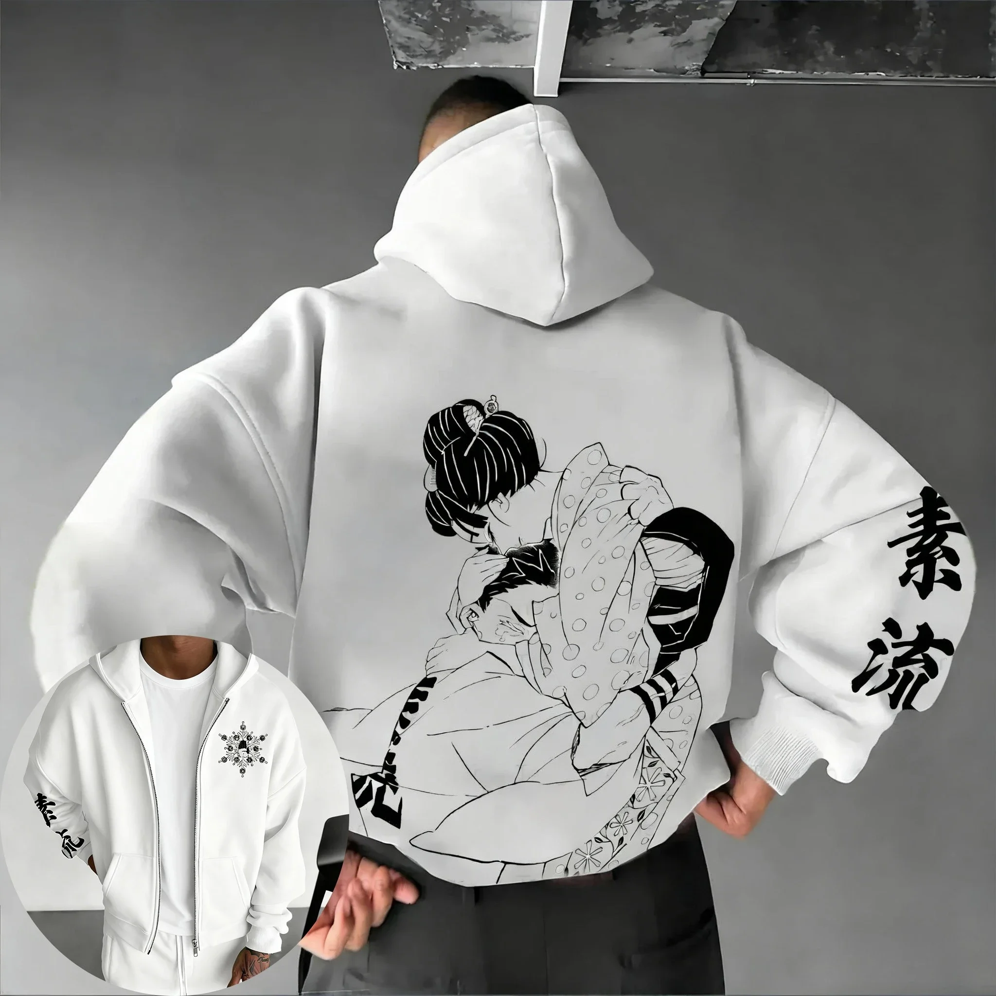 Demon Slayer Anime Plus Size Zipper Hoodie Men's Autumn/Winter American Street Hip Hop Casual Trend Versatile Sweater Top $17.94