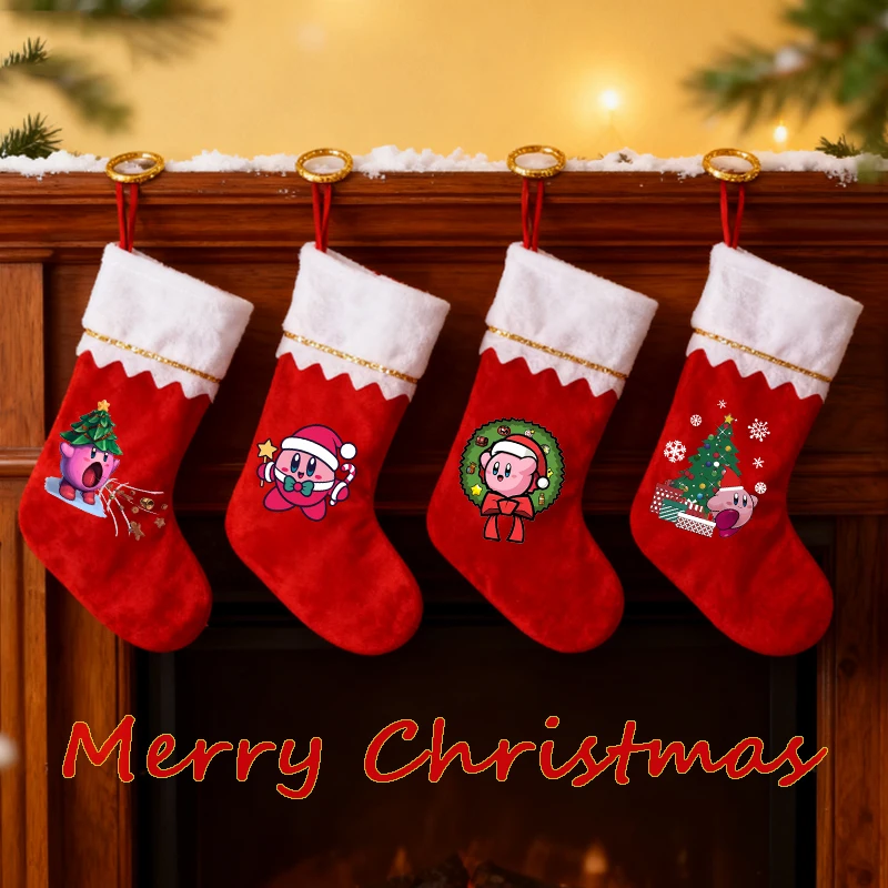 Kawaii Stars Kirbys Christmas Stocking Cartoon Anime Home Decor Candy Gift Bags Bedside Christmas Tree Hanging Socks Xmas Gifts $2.23