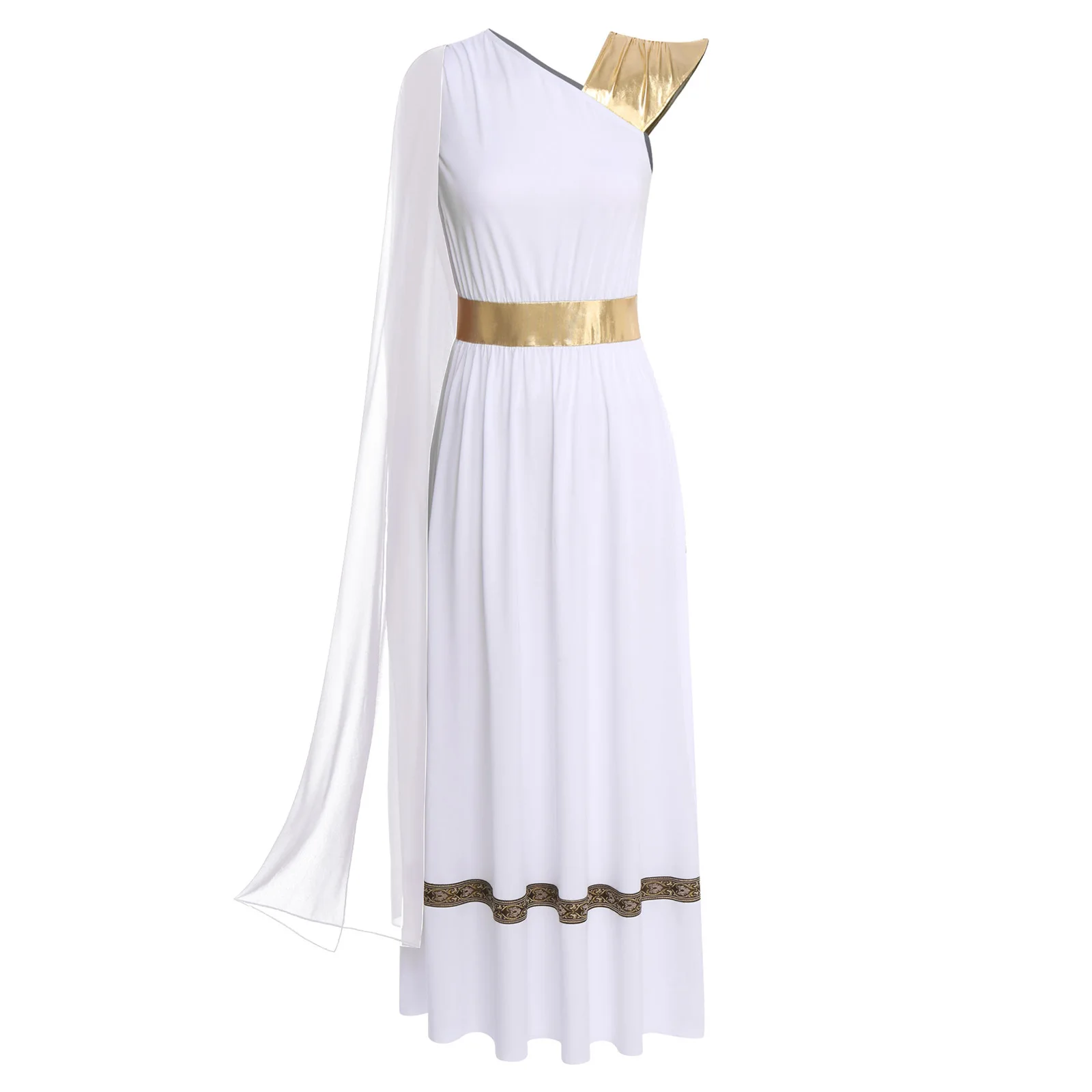 Women Renaissance Ancient Egyptian Queen Performance Role Play Tunic Dress Golden Roman Empress Toga Dress for Halloween Costume $8.10