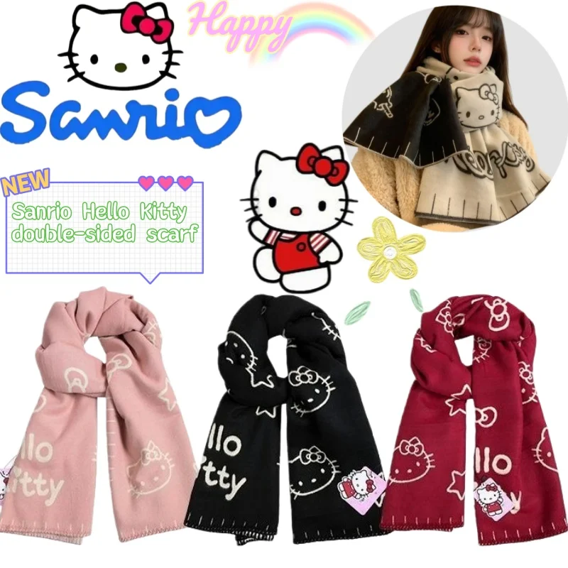 Sanrio Hello Kitty Neck Scarf Creative High-value Cartoon Printing Winter Thickened Warm Soft Double-sided Scarf Gift for Couple $15.38