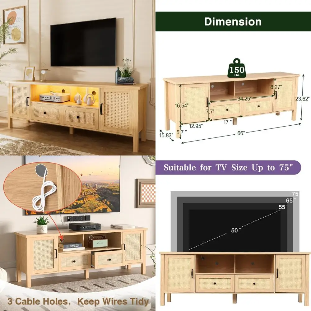 75 Inch LED TV Stands, Entertainment Center with Storage Cabinets, 66 Inch Console, 2 Drawers, Adjustable Shelves $138.87