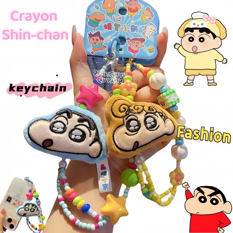 Crayon Shin-chan Cute Doll Beaded Phone Chain Cartoon Anime Creative Keychain Student Backpack Pendant Birthday Gift for Girls $5.85