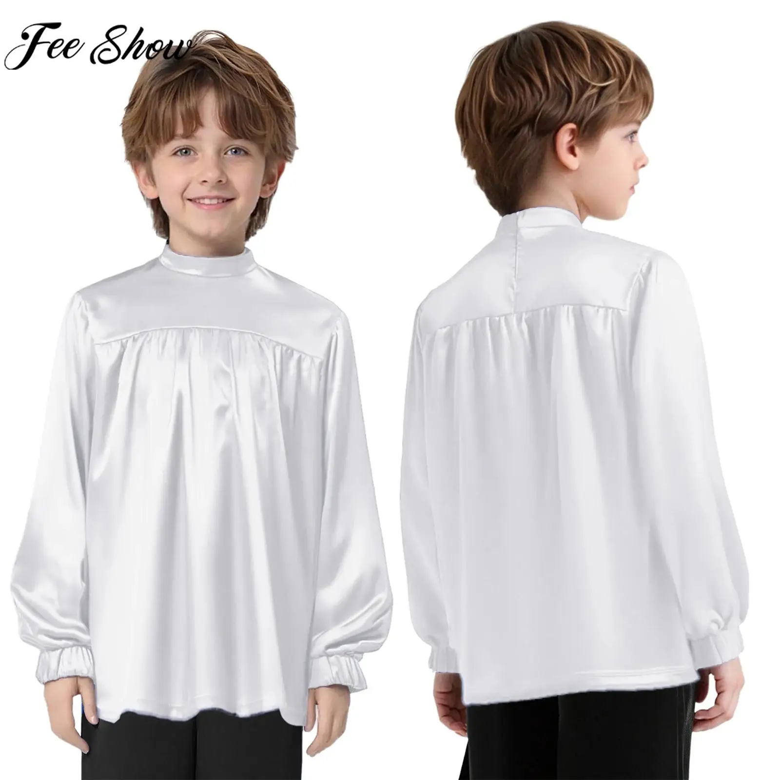 Boys Girls Choir Worship Praise Liturgical Dance Tops Long Sleeve Zipper Satin T-shirt Halloween Carnival Pastor Cosplay Costume $4.98