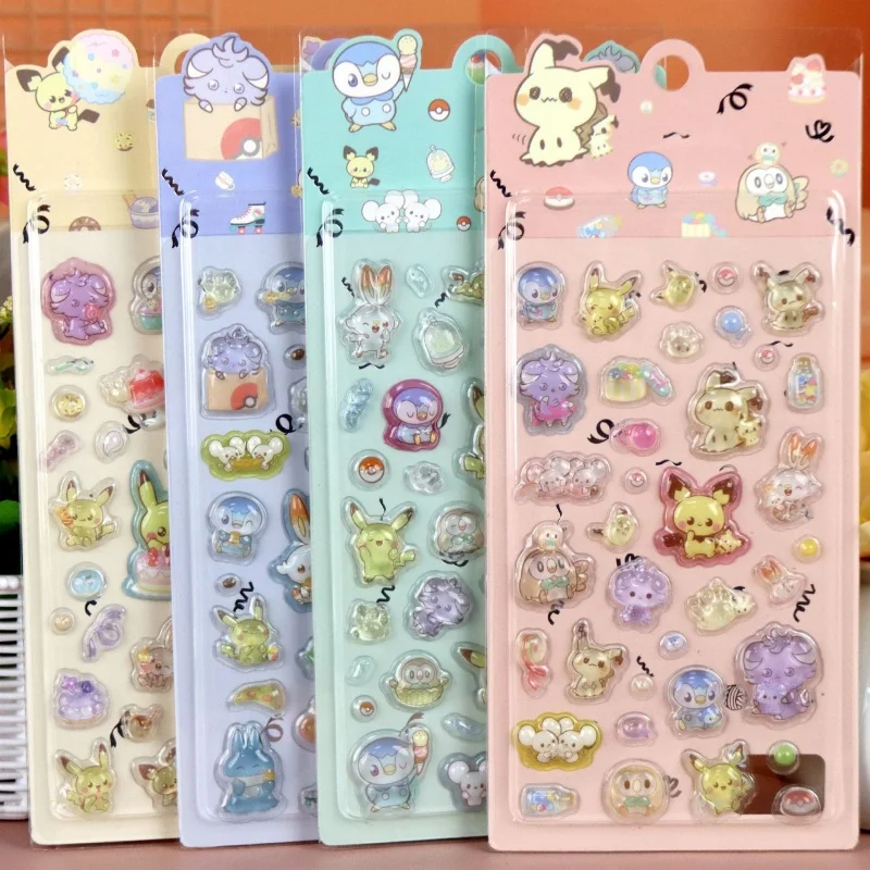 8Pcs Cartoon Pikachu Piplup Espurr 3D Transparent Solid Relief Sticker Kawaii Scrapbook Decoration Girl Exchange Holiday Gift $10.21