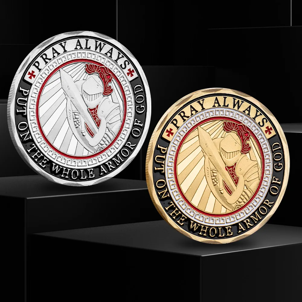 Armor of the God Color Printing Commemorative Coin Double-sided Embossed Plated Coins Military Souvenir For Home Decorations $3.47