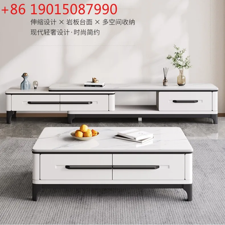 Rock slab coffee table TV cabinet living room household solid wood light luxury telescopic TV floor cabinet $1,748.46