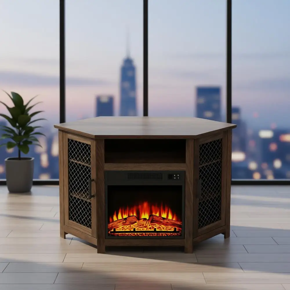 Up to 55 TV Stand with 18 Electric Fireplace, Rustic Media Console, Adjustable Shelves for Living Room Entertainment $285.04