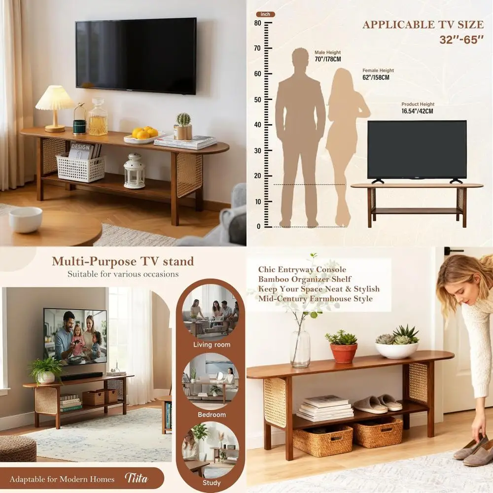 Mid-Century Bamboo TV Stand with Storage for 65 TVs, 2-Tier Entertainment Console for Living Spaces in Walnut $122.76