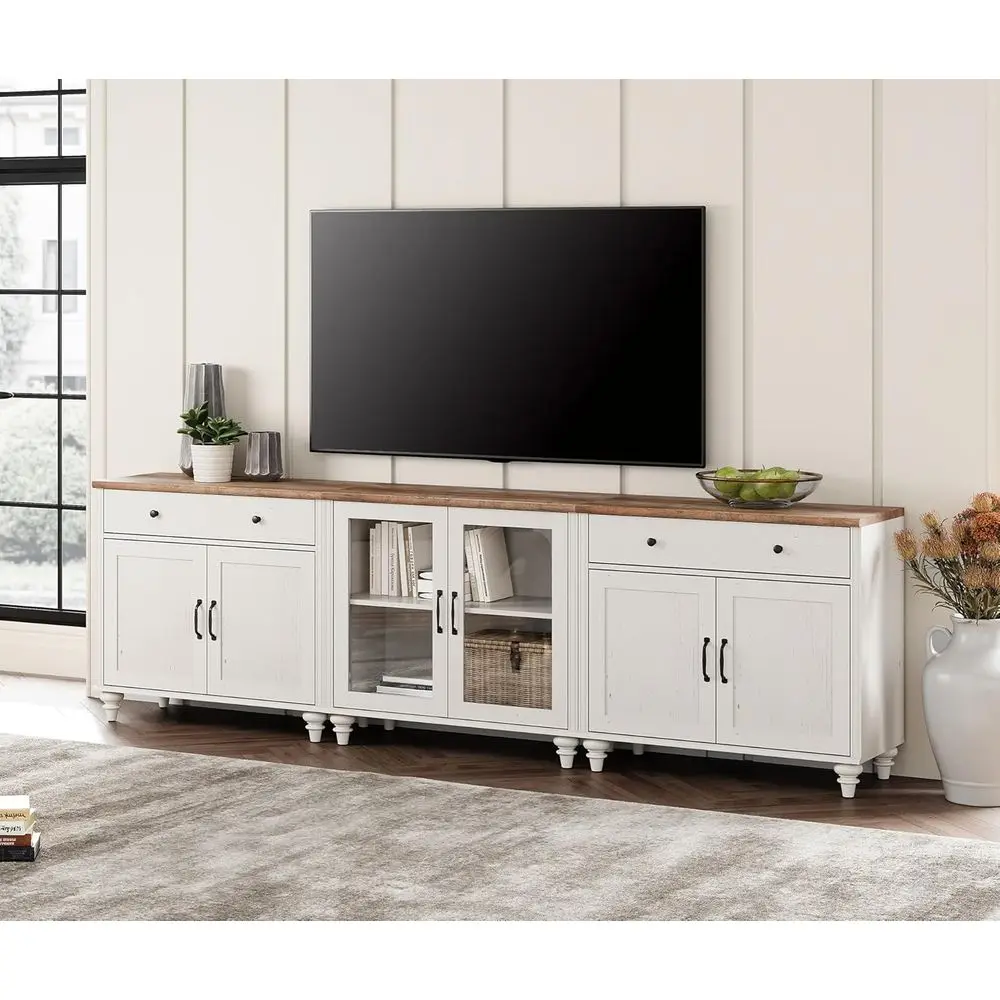 White Modern TV Stand for 100 TVs, 3-in-1 OLED Table, Entertainment Center with Glass Doors and Wooden Accents, Dining Sideboard $644.75