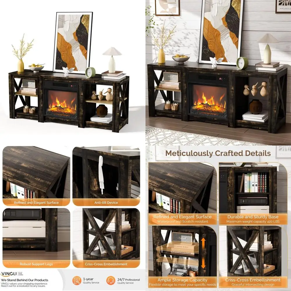 Electric Fireplace TV Stand for 70 TVs, Entertainment Center with Adjustable Shelves, Rustic Oak Finish $225.13