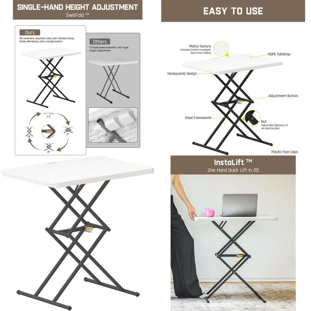 Portable 28 Multifunctional Folding Table with One-Handed Height Adjustment, 3 Height Options, TV Tray, Laptop Desk, No Assembly $78.12