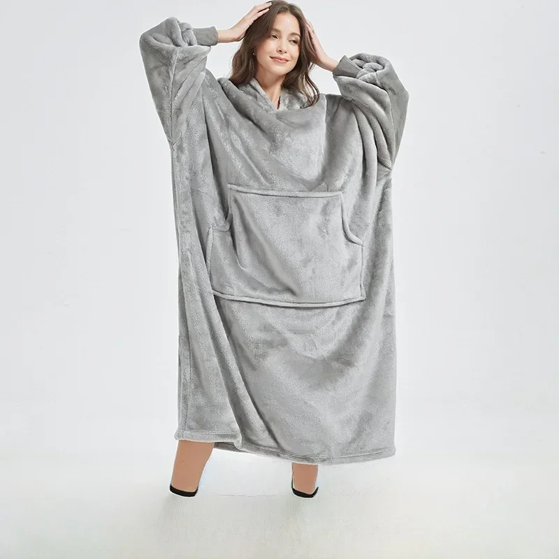 Long Double-Sided Flannel Robe Women's Autumn Winter Wearable Lazy TV Blanket Home Comfortable Warm Polyester Fiber Robe $73.53
