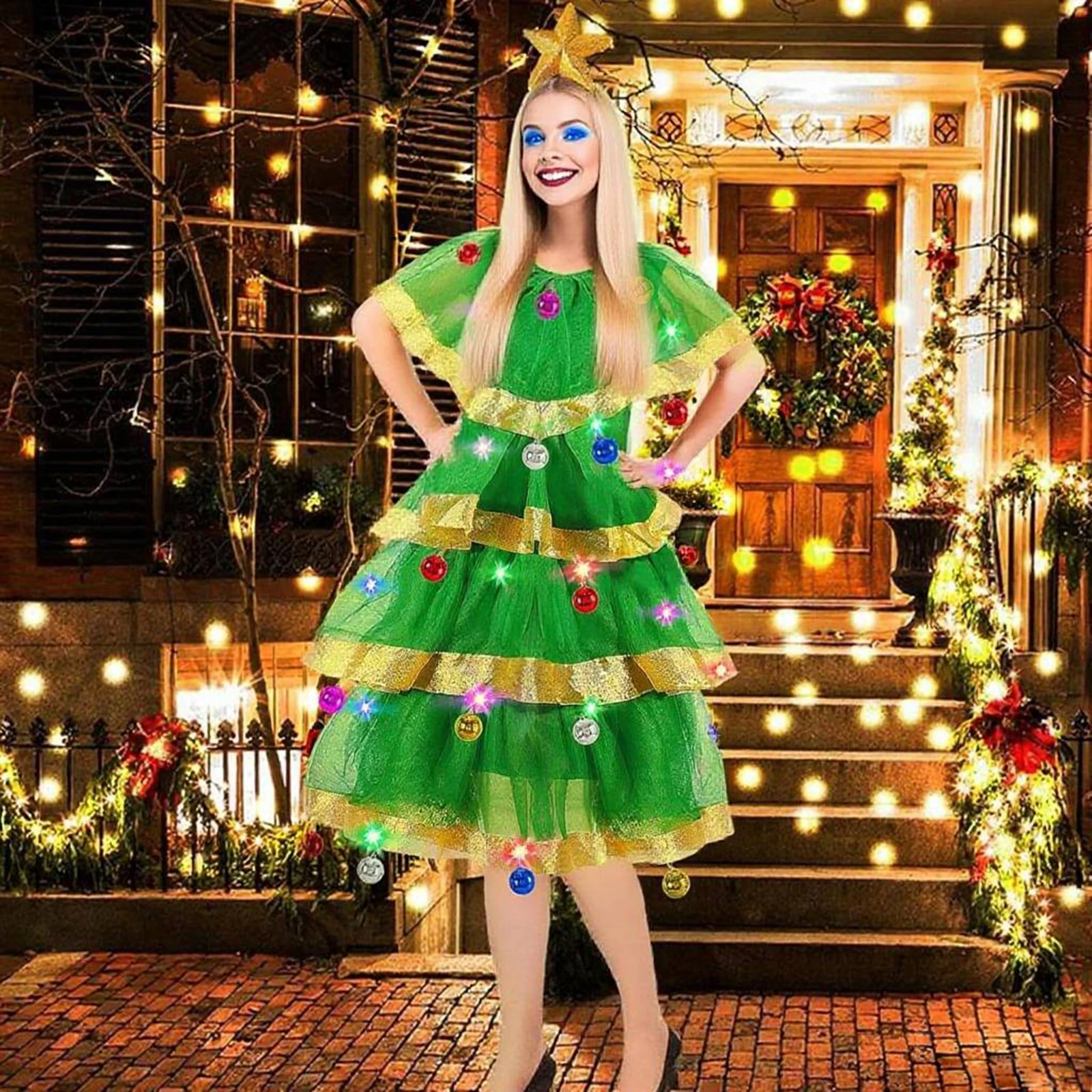 Women Christmas Tree Dress Sleeveless Sequin Layered Tulle Tutu Dress Christmas Xmas Tree Green Dresses $11.98