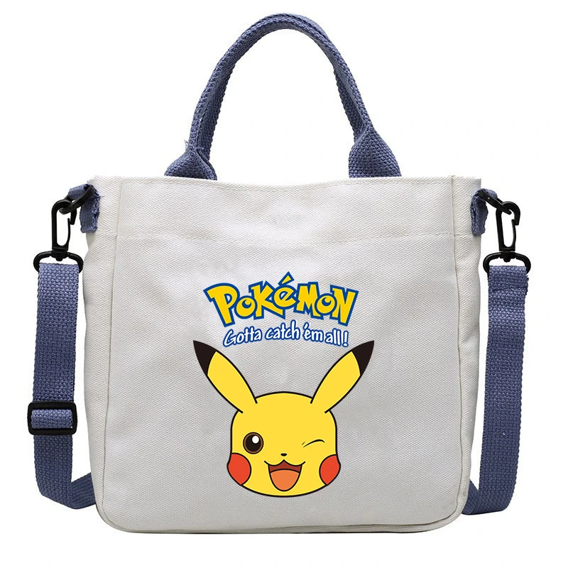 Pokemon Canvas Bags Anime Printed Pikachu Figures Shopping Tote Bags New Commuter Simple Versatile Storage Bag Girls Boys Gift $6.21