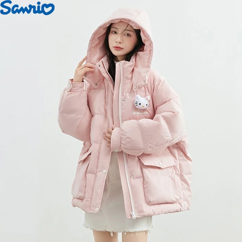 Hot Kawaii Hello Kitty Winter Down Jacket Women Sanrio Anime Thicken Warm Hooded Clothes Student Trend Coat Cotton-Padded Jacket $37.77