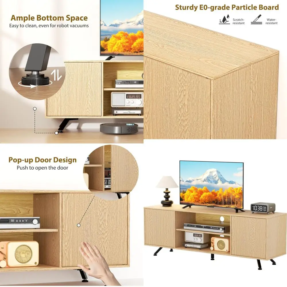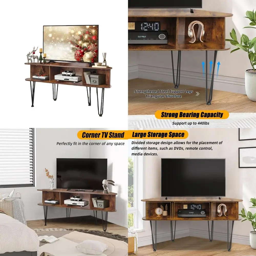 50 Inch TV Entertainment Center with Storage, Industrial Style Media Table, Anti-Slip Pads, Brown Living Room Stand $220.80