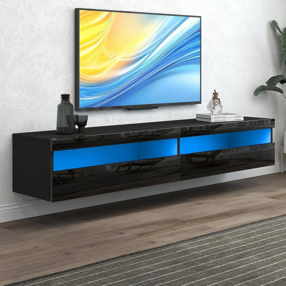 65-80 LED-lit 71 High Gloss TV Stand with Power Outlet, Modern Media Console for Wall-Mounted TVs, Black $184.88