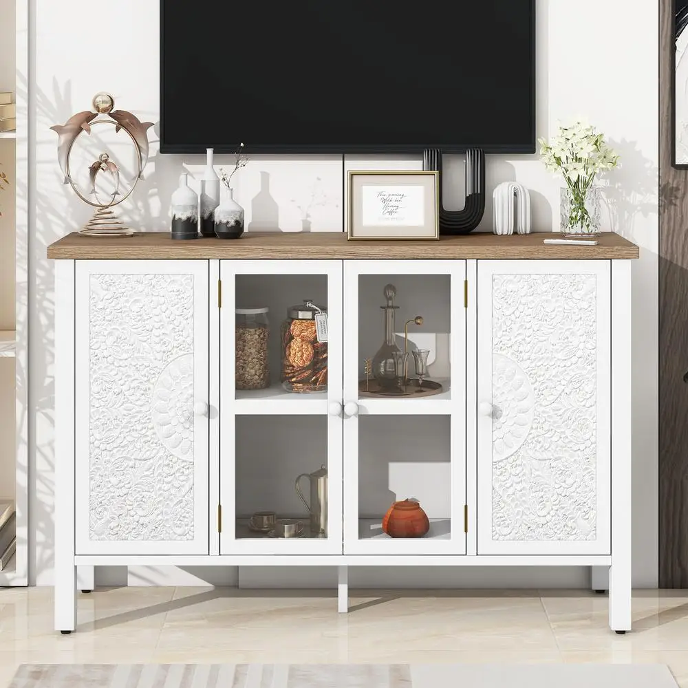 47.2'' Retro TV Stand Media Console with Glass Door 3 Cabinets Wood Grain Veneer Entertainment Center for Living Room $172.63