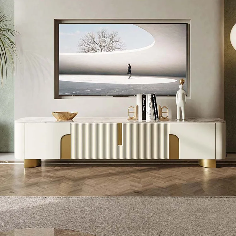 Light luxury rock slab TV cabinet coffee table combination living room simple small apartment stainless steel storage $620.96