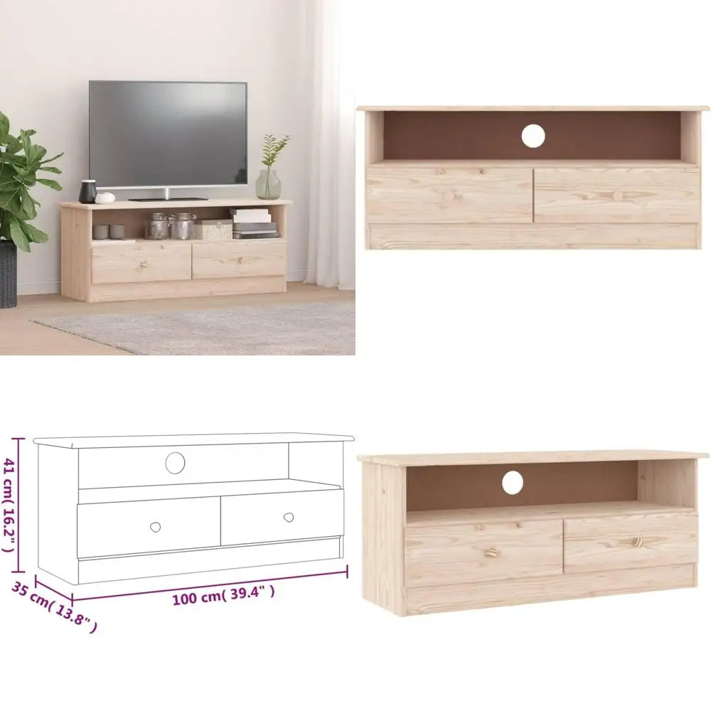 Modern Living Room TV Stand with Drawers - Entertainment Center Furniture for TVs, 39.4x13.8x16.1 Inches Solid Wood $171.64