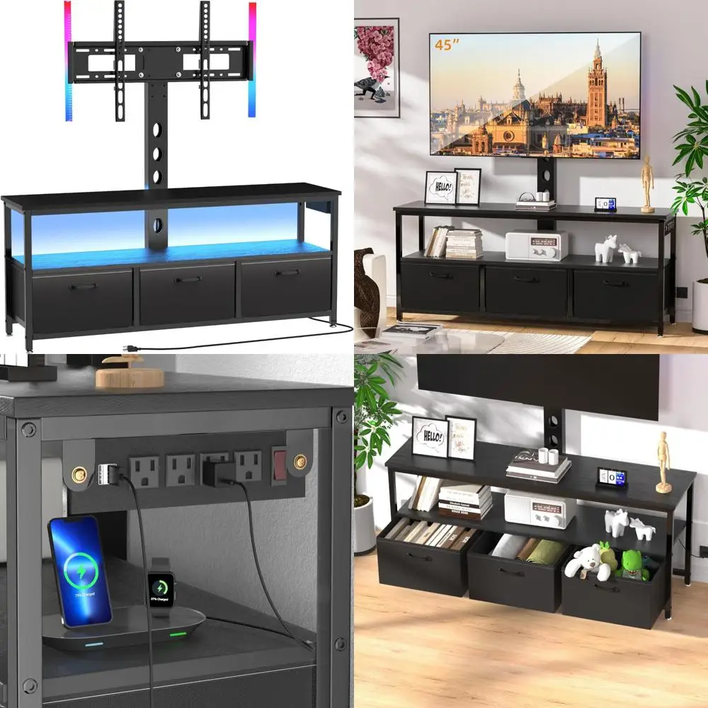 Adjustable Swivel TV Stand with Built-in Power Outlet and LED Lights for 32-65 Inch TVs, Tall Entertainment Center $151.61