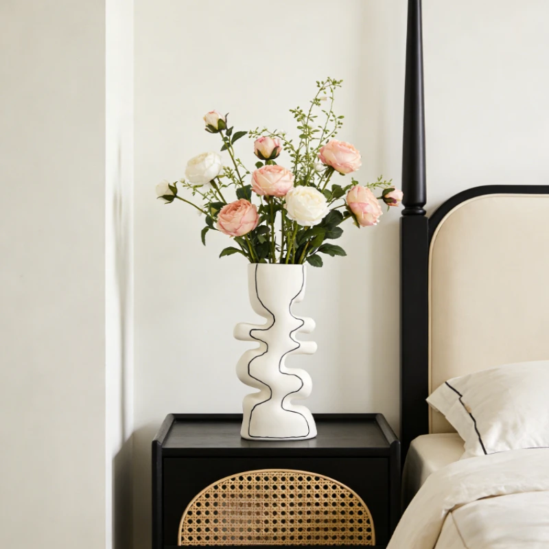 Nordic Creative Irregular Hand Painted Line Wave Pattern Vases Ornament Living Room Dining Room TV Cabinet for Home Decoration $80.31