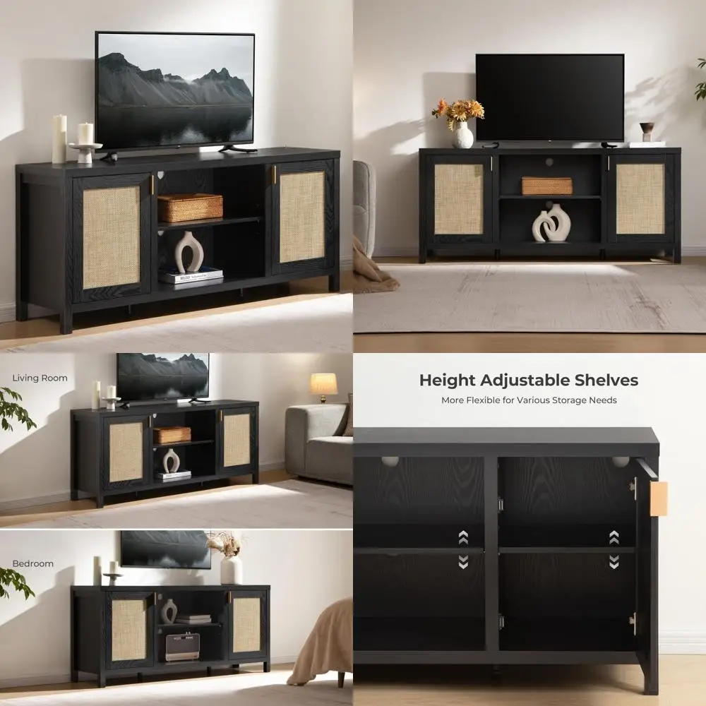 Farmhouse Style Rattan TV Stand - Tall 26-inch Entertainment Center with Storage, Wicker Door, Media Console for Living Room $212.41