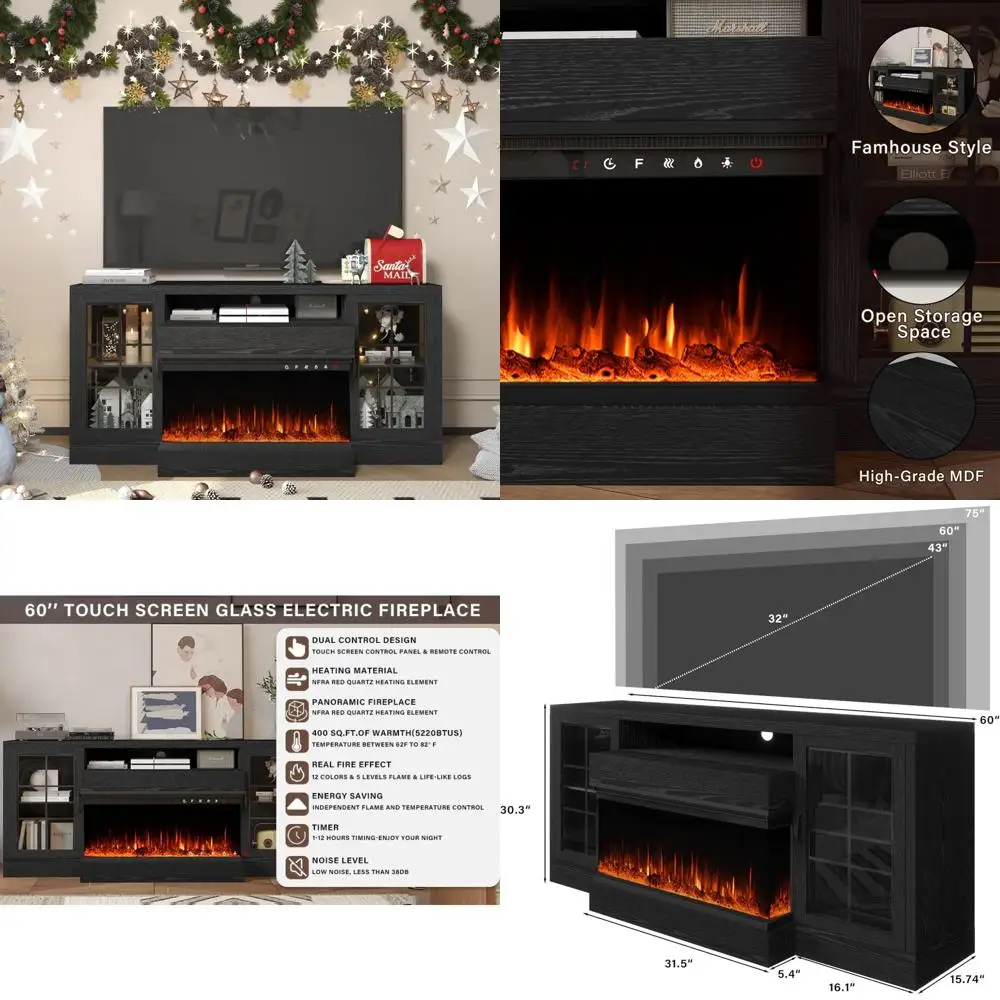 60 Inch Fireplace TV Stand for 75 TVs with 3-Sided Electric Fireplace, Farmhouse Style Entertainment Center $445.06