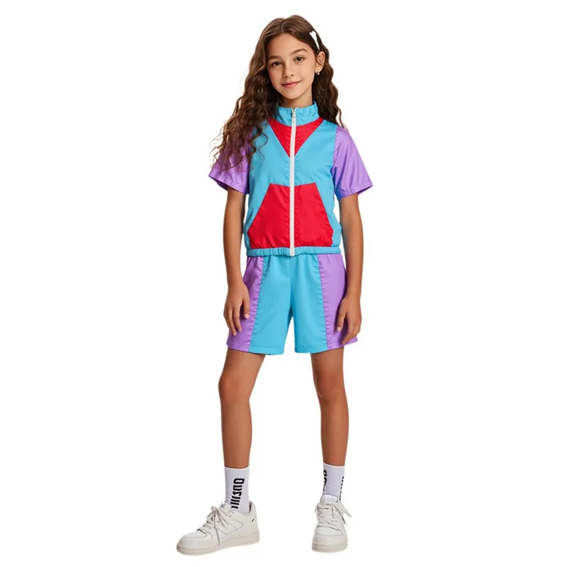 Childrens 80s 90s Disco Sportswear Hip Hop Dance Costume Short Sleeve Shorts Set for Festival Show Gymnastics Performance $9.98