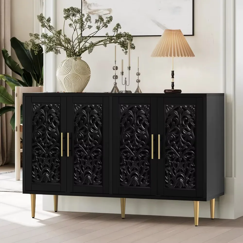 47.8" Accent Cabinet with 4 Doors, Vintage Hollow Carving Buffet Cabinet, Sideboards and Buffets with Storage Credenza $191.69