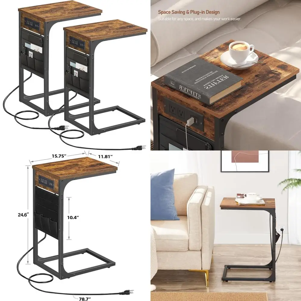 C-Shaped End Table with Charging Station, Storage Side Table for Sofa and Couch, Set of 2 with USB Ports and TV Tray $100.90