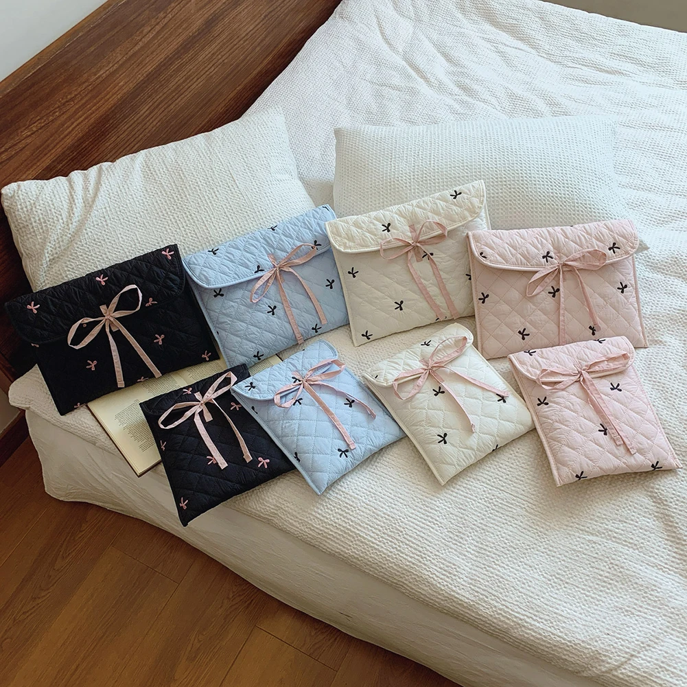 Puffy Laptop Sleeve Cute Embroidered Bow Laptop Carrying Case Laptop Sleeve Case for 11/13/15 Inch Notebook Tablet $12.05