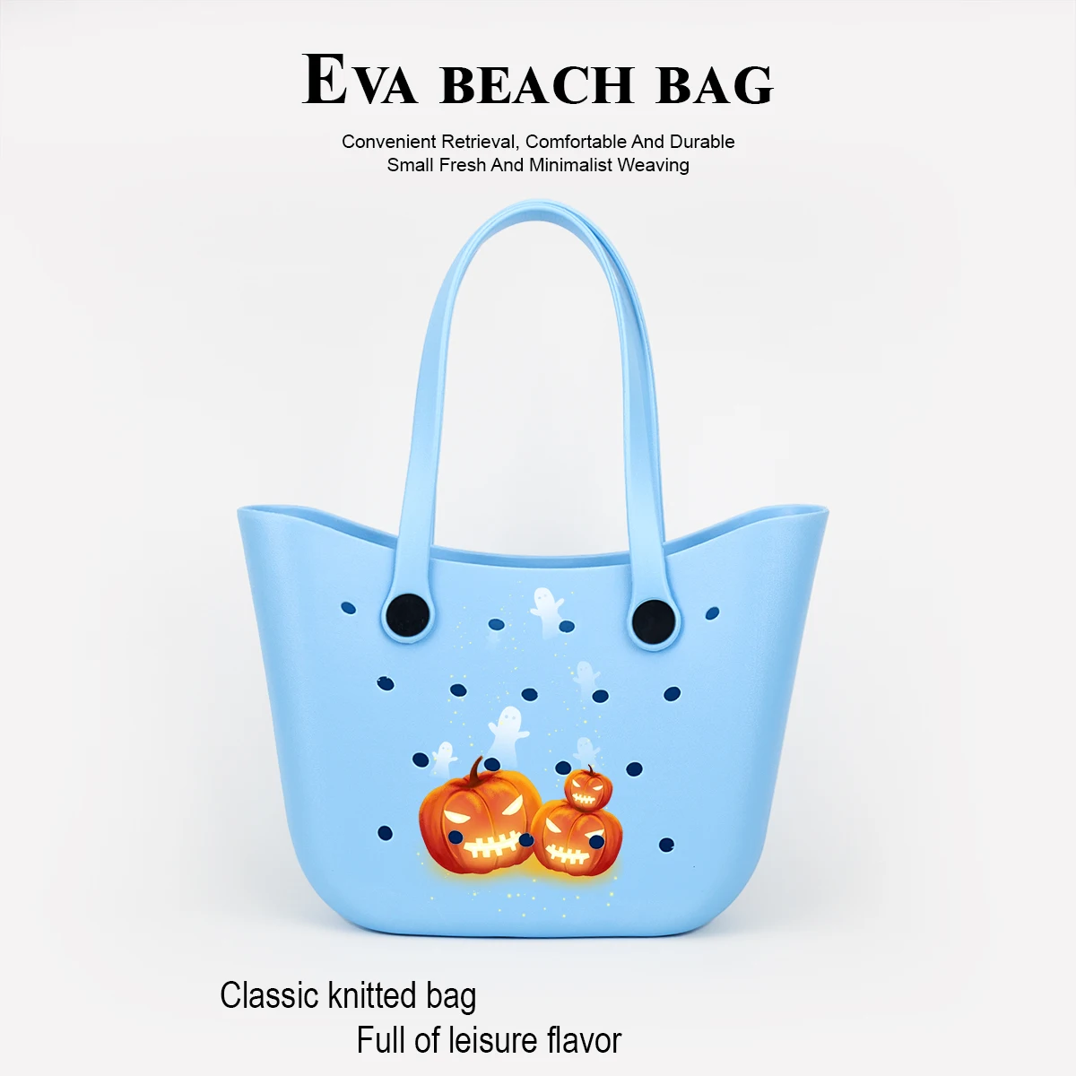 Cartoon Pumpkin Pattern Halloween Decoration Printed Eva Bag, Hole Bag, Can Hold Snacks, Candies, Books, Tablets, Phones, Tissues, Suitable for Women, Children, College Students, Daily Commuting, Travel and Vacation Use, Open-Top, Durable, Breathable, Waterproof, Reusable, Versatile for All Seasons $22.62
