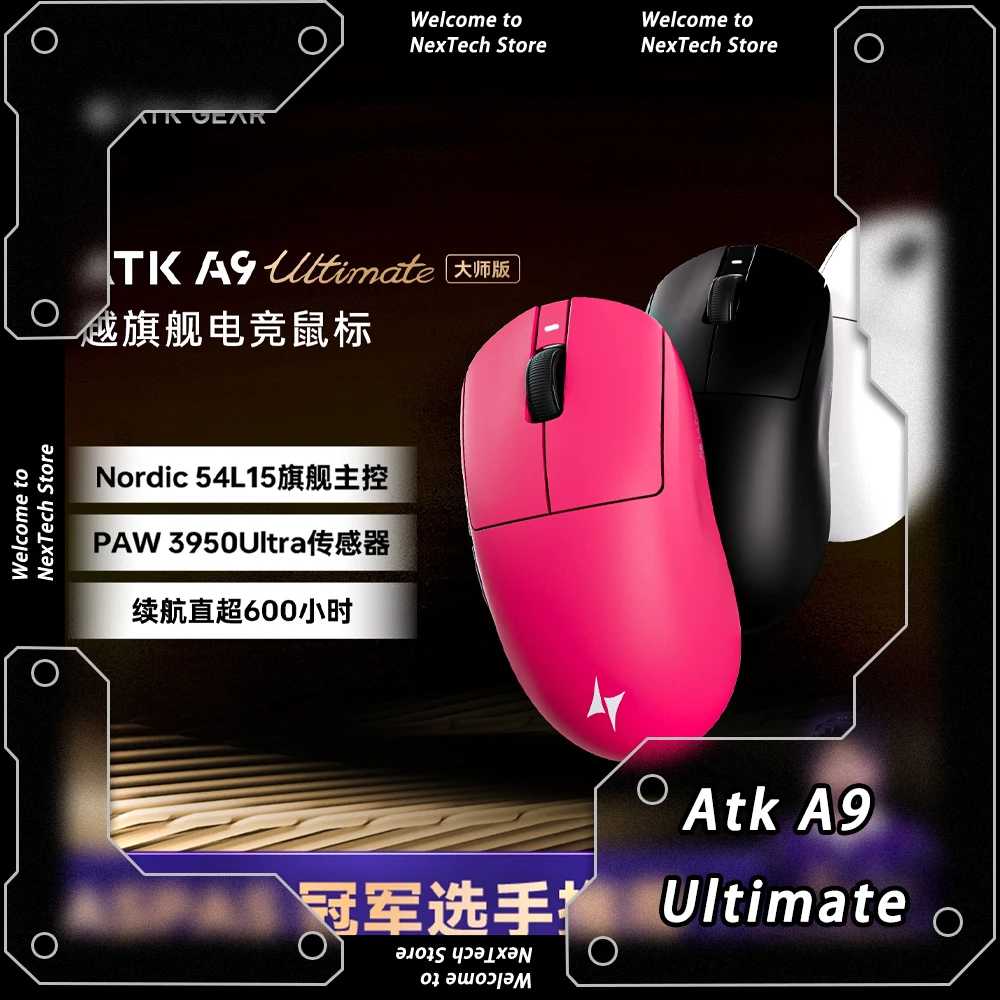 New Atk A9 Ultimate Ultra Max Tri Mode Mouse Paw3950ultra Gaming Mouse New Nano Coating 53g Lightweight Mice Hub3.0 Custom $48.90