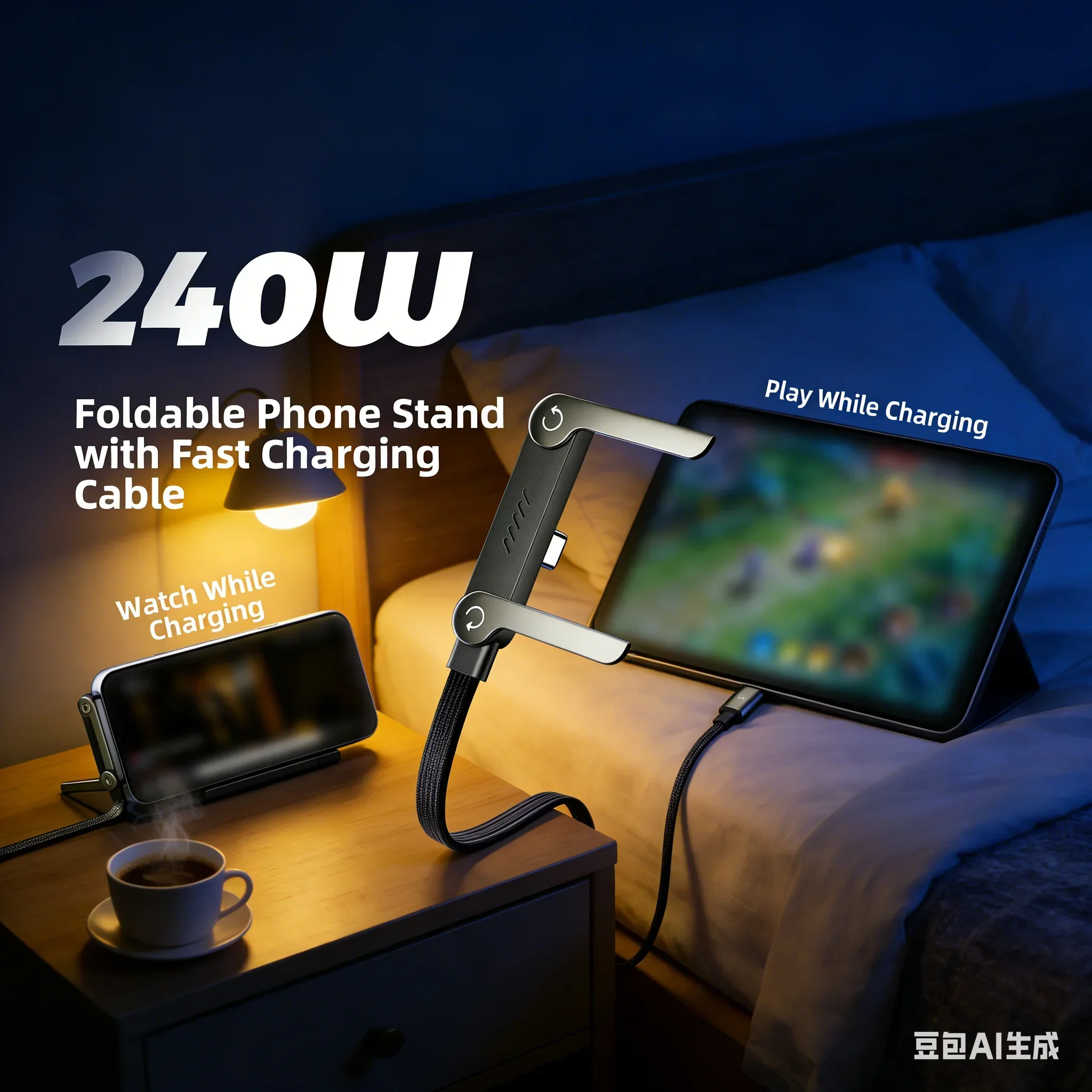 240W Fast Charging Cable With Built-in Phone Bracket 1.5m Length Smartphone Tablet Data Cable Holder Charging Line For IPhone17 $4.79
