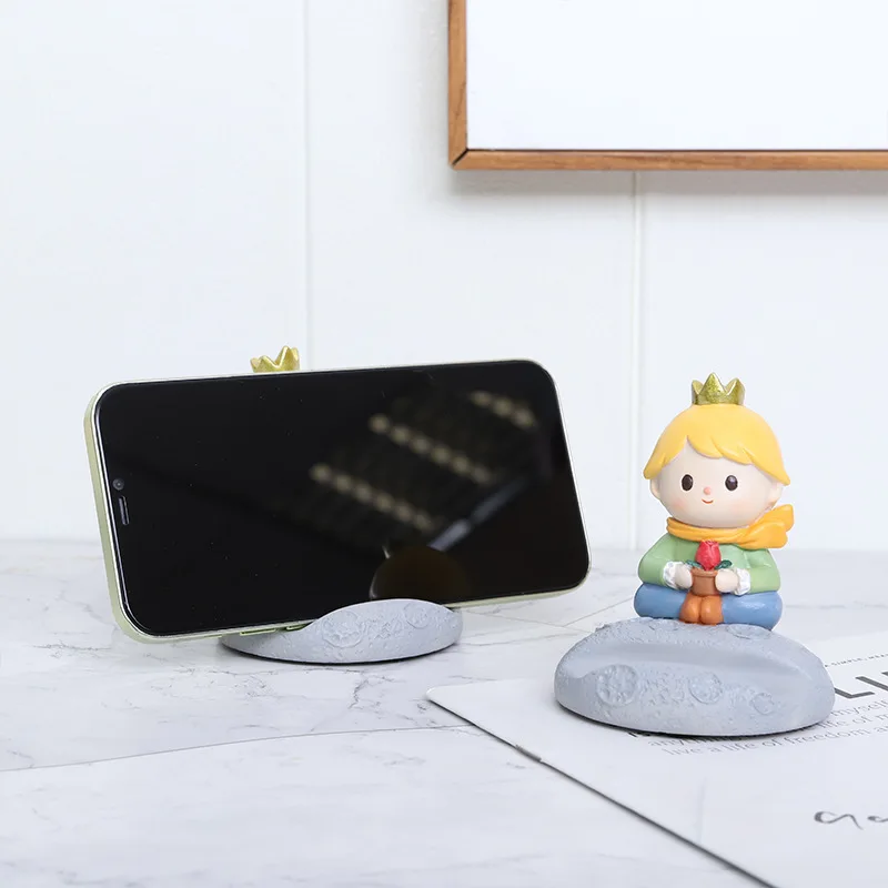Cartoon Pilot Little Prince Phone Stand Two Styles Resin Craft Tablet Support Stand Desktop Ornament Creative Home Decor Gift $18.95