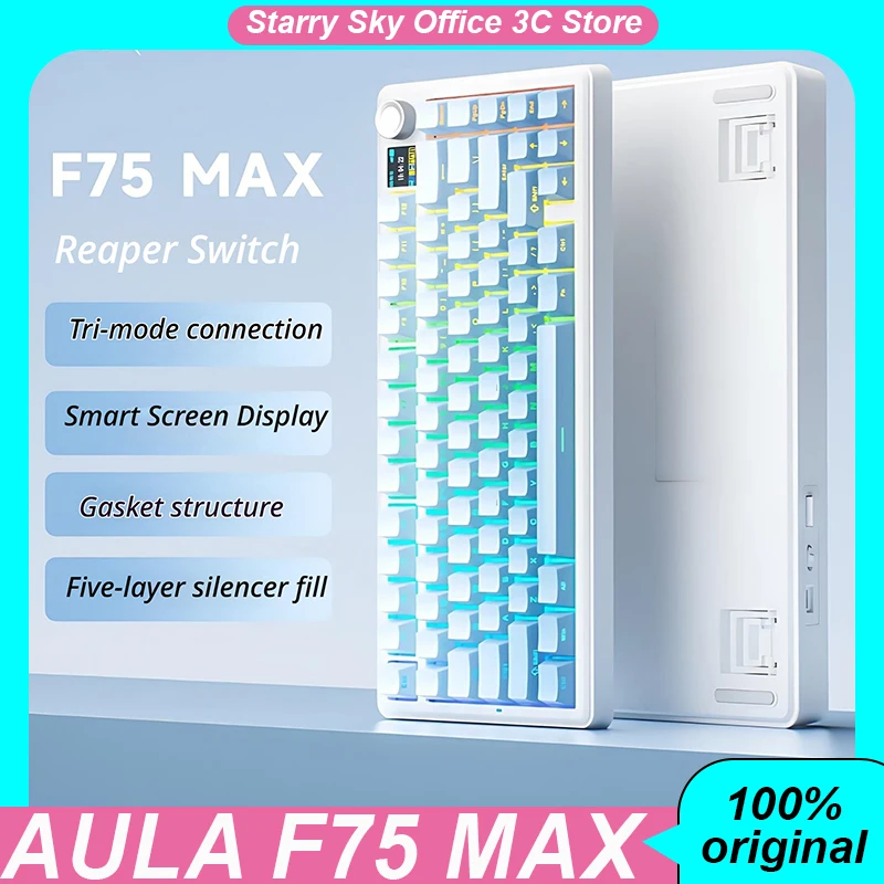 AULA F75 MAX Wireless Gaming Keyboard Tri-Mode Mechanical Keyboard Gasket Structure Fully Hot-Swappable Keys Office Keyboards $101.02