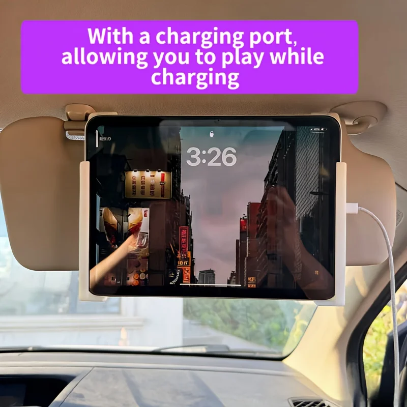 Universal Car Sun Visor Phone/Tablet Holder (With Charging Port),Adjustable White Clip Suitable for Most Car Models,L-Shaped $5.50
