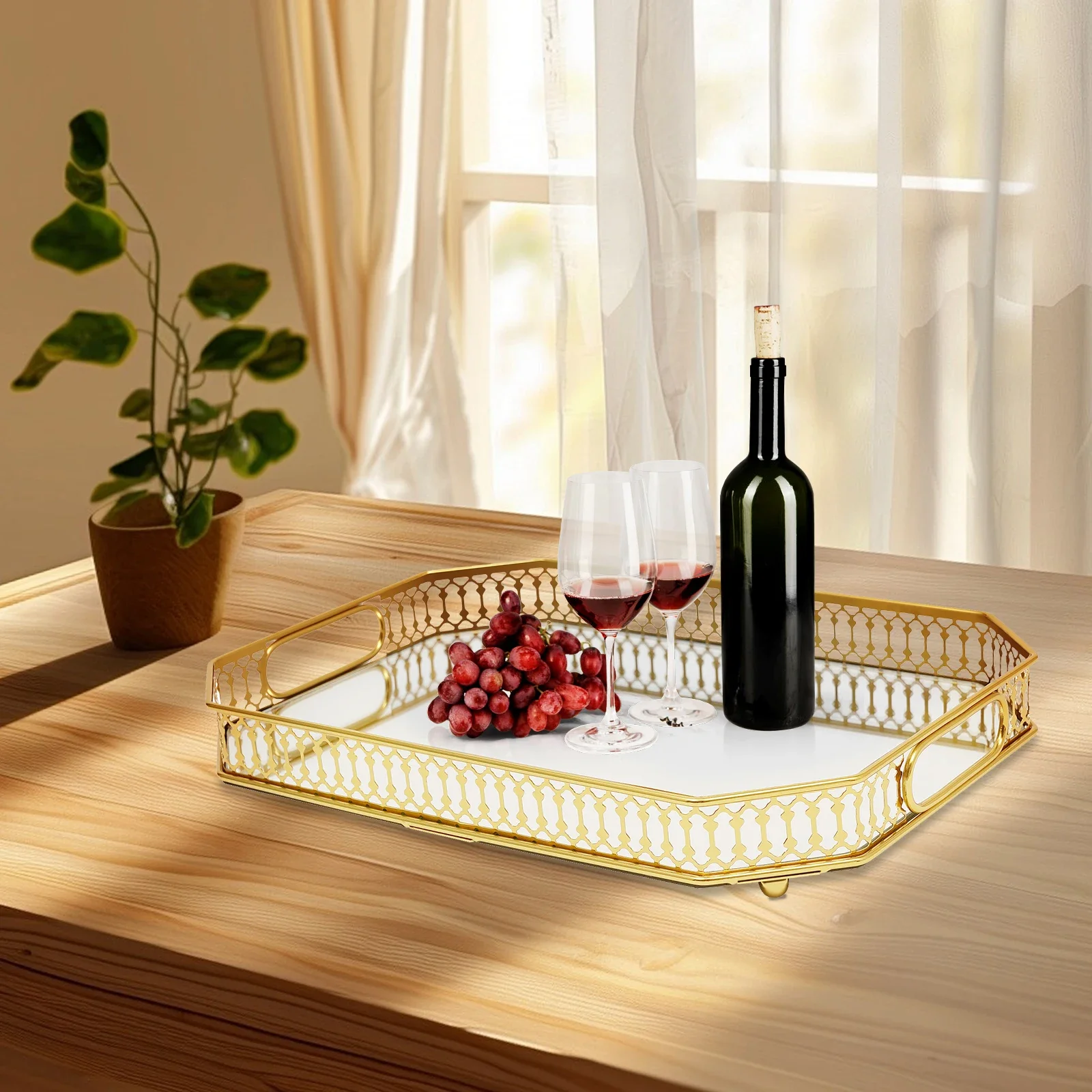 Gold Decorative Tray,Rectangular Desktop Tray, Decorative Tray,Tablet Decoration, Stainless Steel Serving Tray,Make Up Organiser $26.84