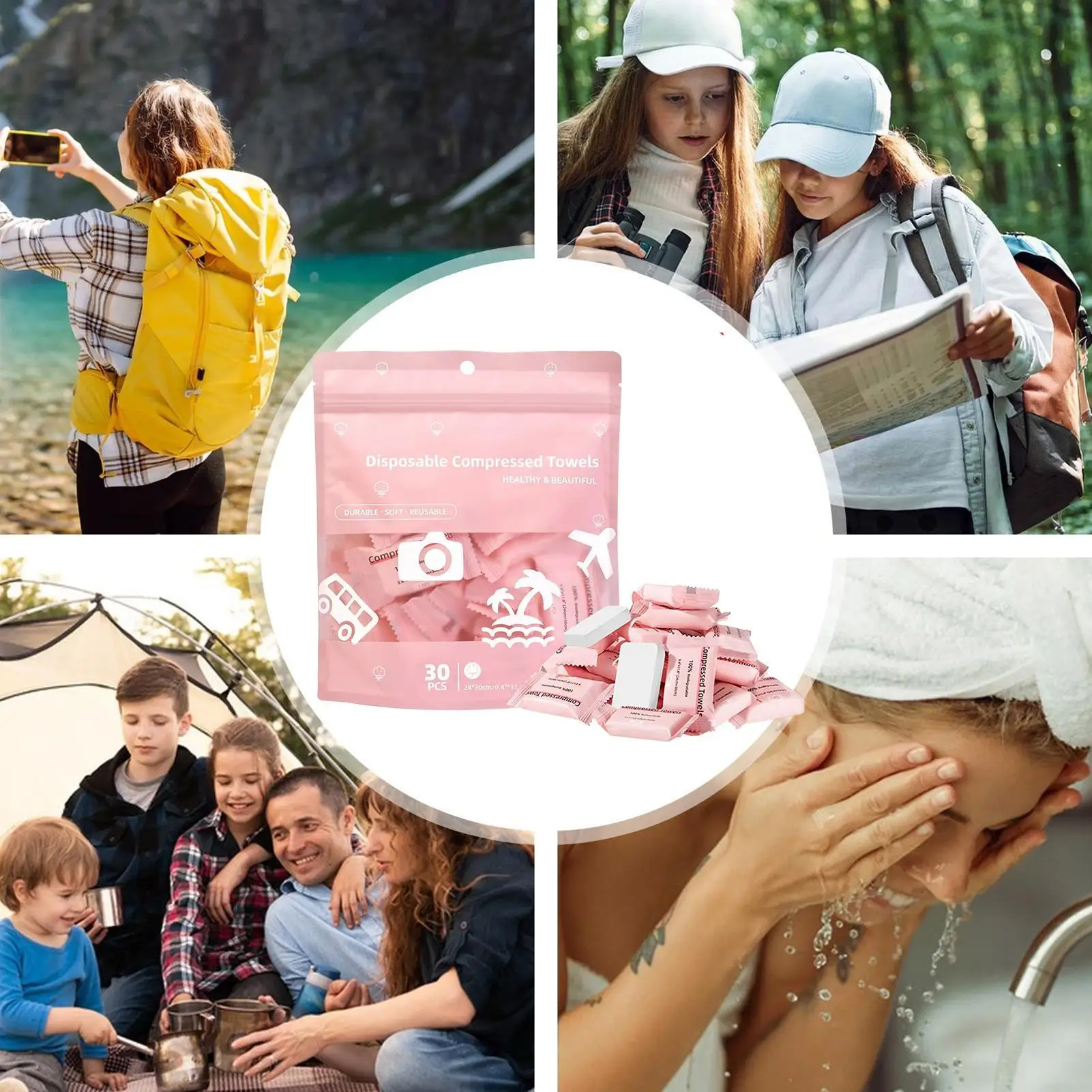 Travel Compressed Towel Absorbent Tissue 30 Pieces Washcloths Tablets Compressed Face Towels For Bathroom Camping Hotel Gym Spa $18.92