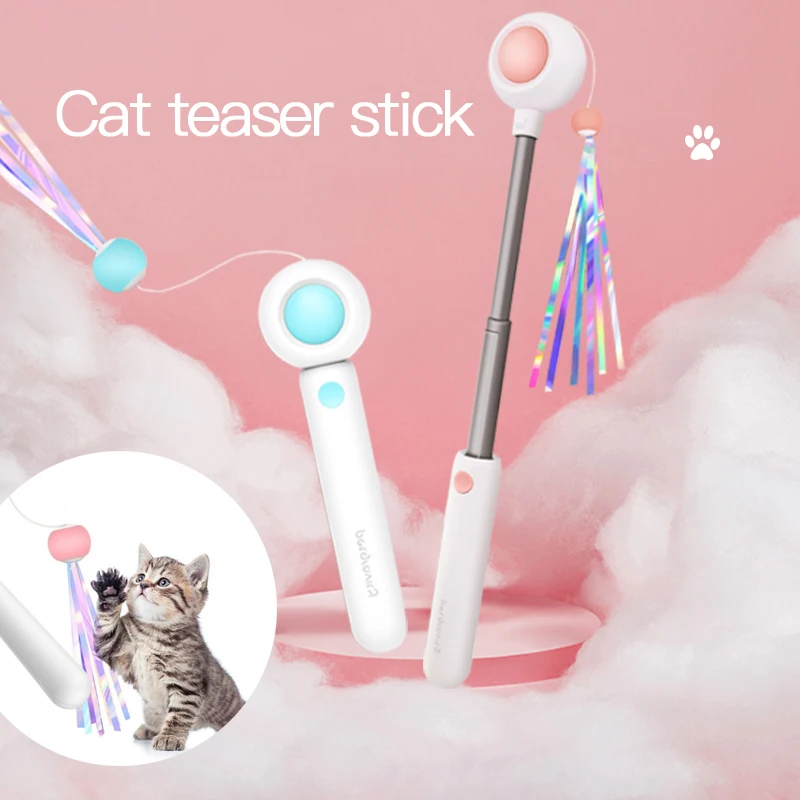 Interactive Cat Toys Retractable Cat Stick Toy For Kitten Playing Cat Laser Teaser Wand Feather Tease Wand with Ball $7.16